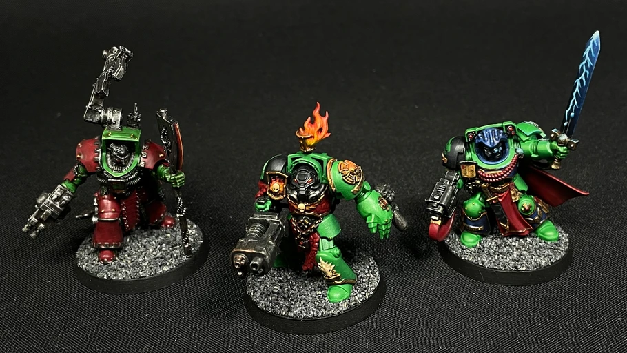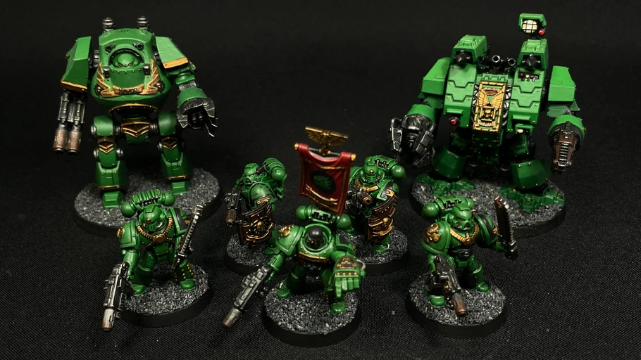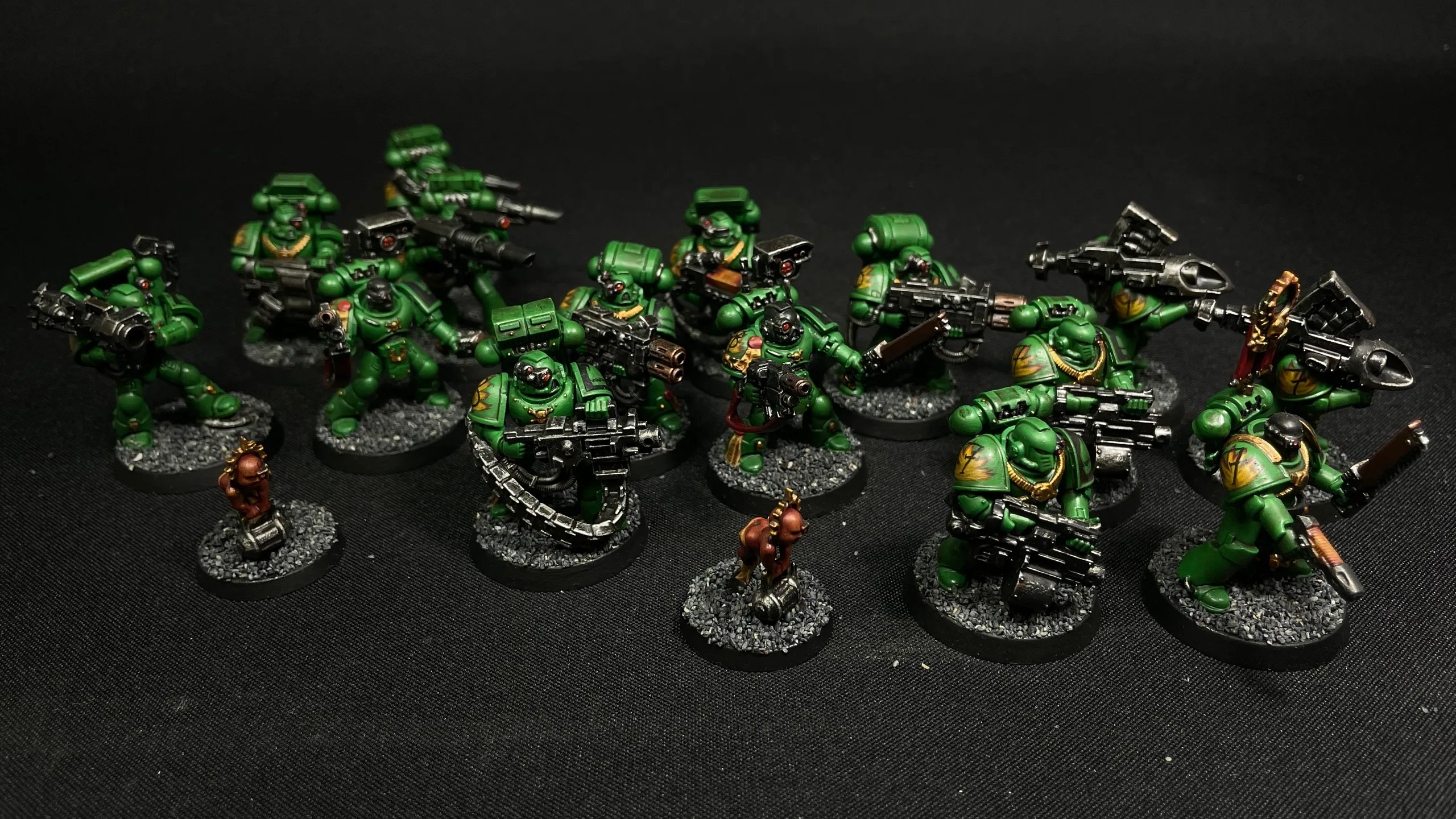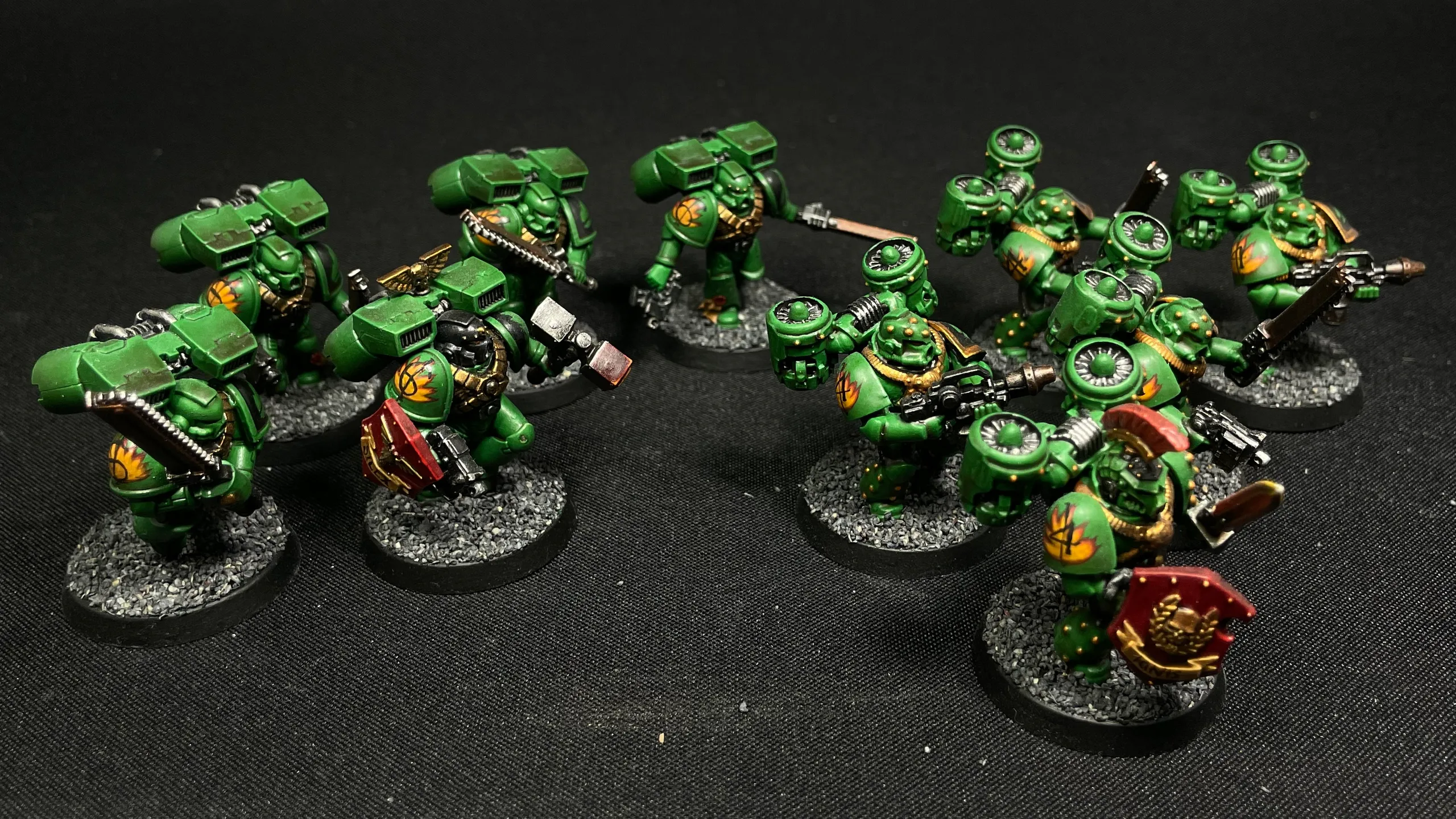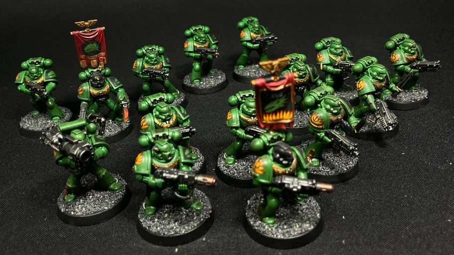 Half a battle company of Warhammer 40,000 firstborn Salamanders